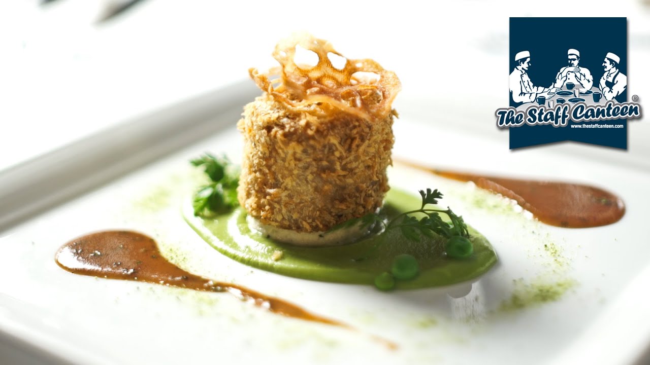 Michelin star chef Marcello Tully creates a recipe of slow cooked roast Black Isle Scotch lamb shoulder with a warm tarragon mousse; a current dish on the menu at Kinloch Lodge. The dish is slow cooked and then flaked before breaded and fried before being served on a warm tarragon mousse
