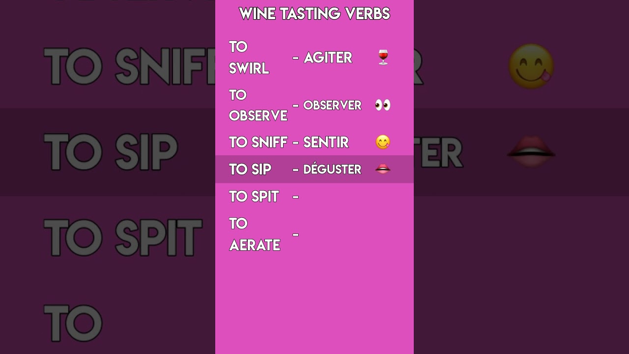 Learn the essential verbs used during a wine tasting. From swirling to sipping, impress your friends with your French wine knowledge. #LearnFrench #FrenchVerbs #WineFrench ActFranceFrenchfrench phrasesFrench verbsfrench vocabularyfrench winelearn frenchSommelierTastingVERBSVideoVlogvocabulaire françaisWinewine frenchwine tastingYouTubeWrite A CommentYou must be logged in to post a comment.