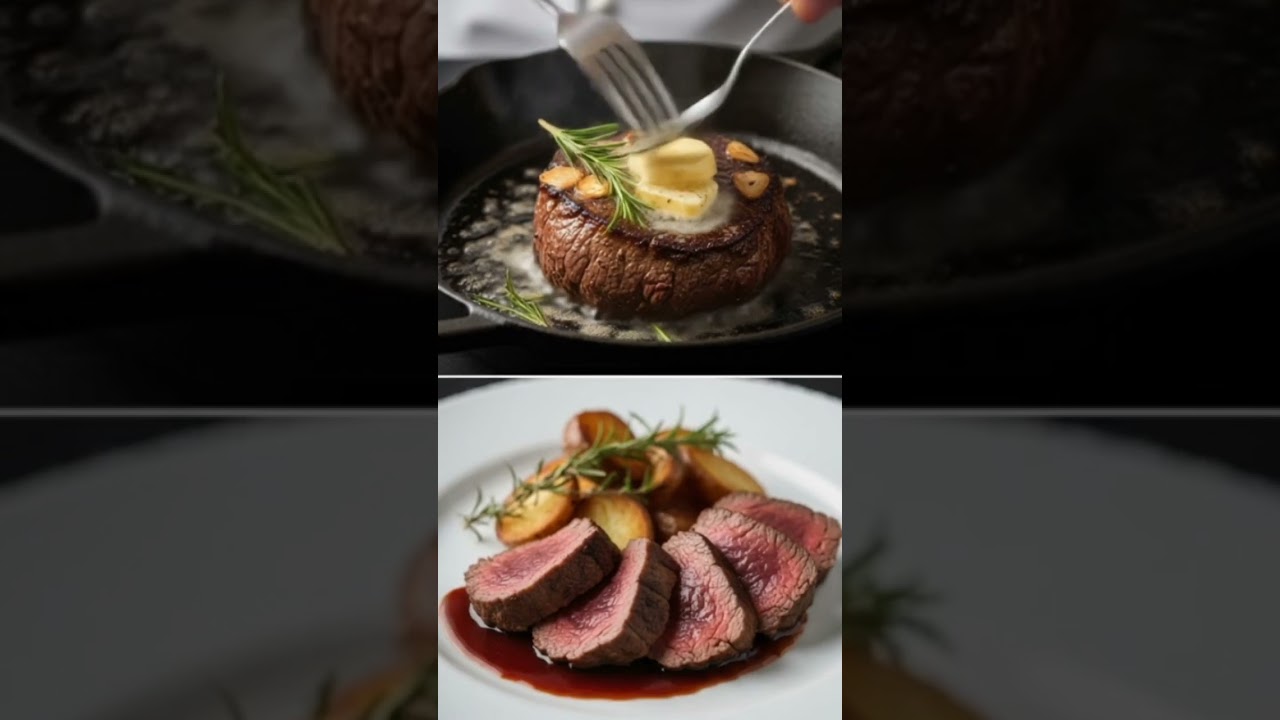 Watch as it sears to golden perfection in sizzling butter, garlic, and rosemary, filling the air with rich, aromatic flavors. The crust crisps beautifully while the inside stays buttery soft and pink. Every moment — from the first sear to the elegant plating — captures the essence of luxury steakhouse cooking.