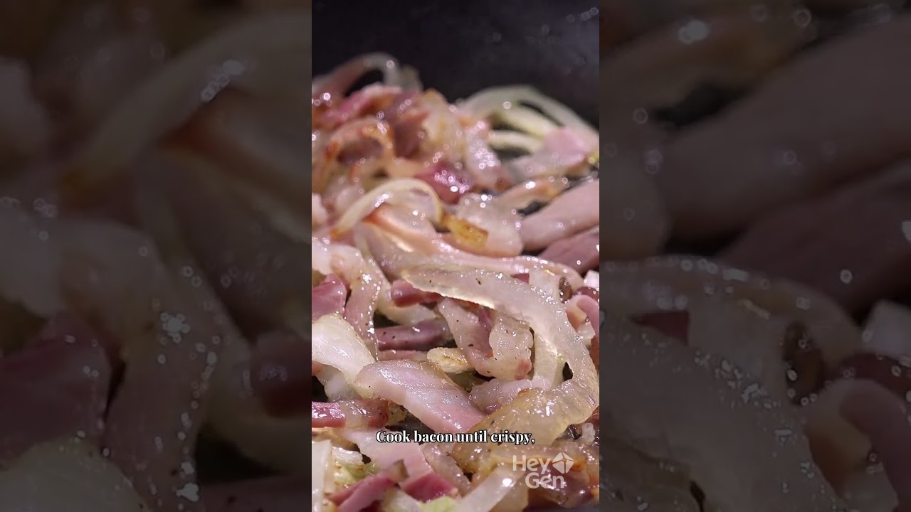 Cook bacon in a skillet until crispy. Add onions and cook until soft.