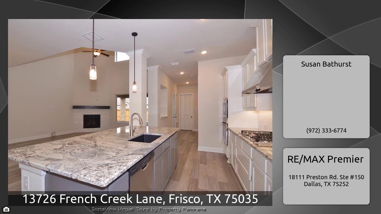 The Virtual Tour for the property at 13726 French Creek Lane, Frisco, TX 75035 listed for $3,200: Other homes for sale by Susan Bathurst of RE/MAX Premier: Amazing energy efficient 5 bedroom 4 bath new David Weekley home in the sought after Prairie Creek Community located in the city of Frisco with Prosper schools. Master & Guest bedrooms are downstairs. Private study, gorgeous open living area & kitchen and dining space, Gameroom and 3 spacious secondary bedrooms upstairs. Fabulous community amenities including pool, clubhouse, & playground.