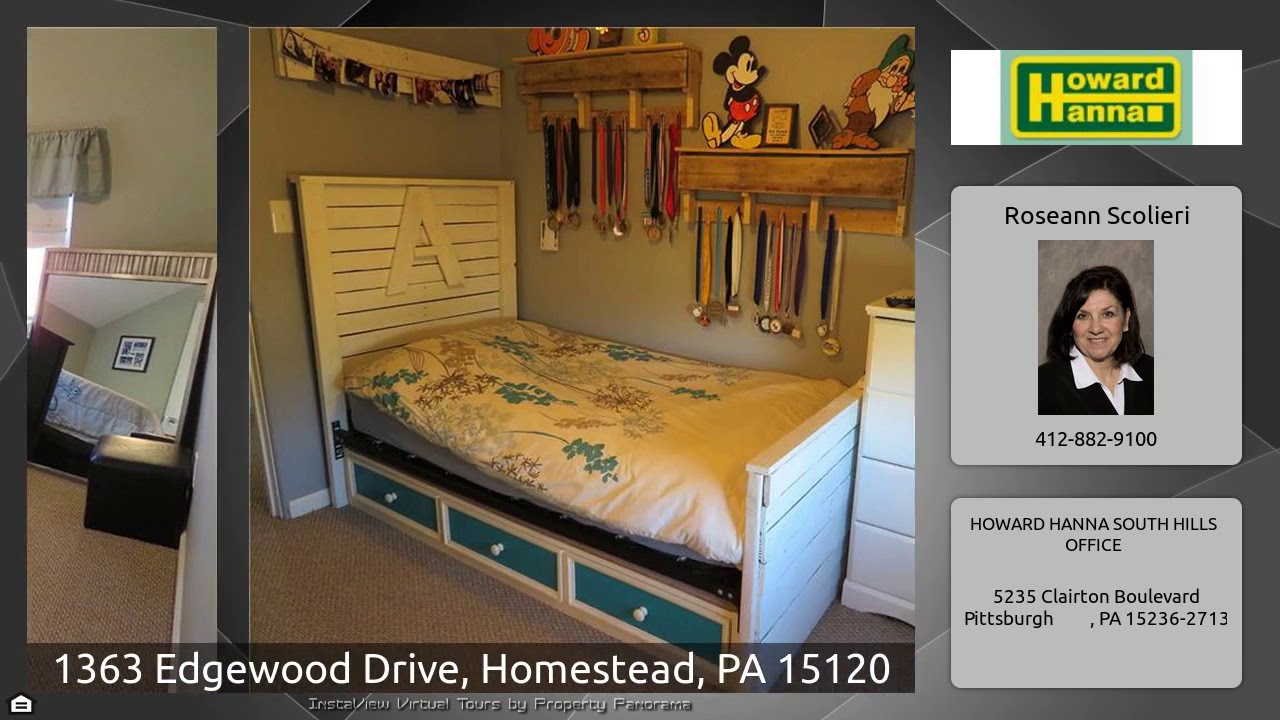 The Virtual Tour for the property at 1363 Edgewood Drive, Homestead, PA 15120 listed for $144,900: Other homes for sale by Roseann Scolieri of HOWARD HANNA SOUTH HILLS OFFICE: Looking for a turn the key condition, look no MORE, this beauty has a wonderful side porch with custom canvass awnings and patio furniture incl. Great additional space for entertaining with access to dining and kitchen through a french door. Updated kitchen with appliances, pantry and shelving. The Living room has today's premium paint colors that can accommodate any furnishings. Enjoy the privacy of the 2nd floor with 3 …