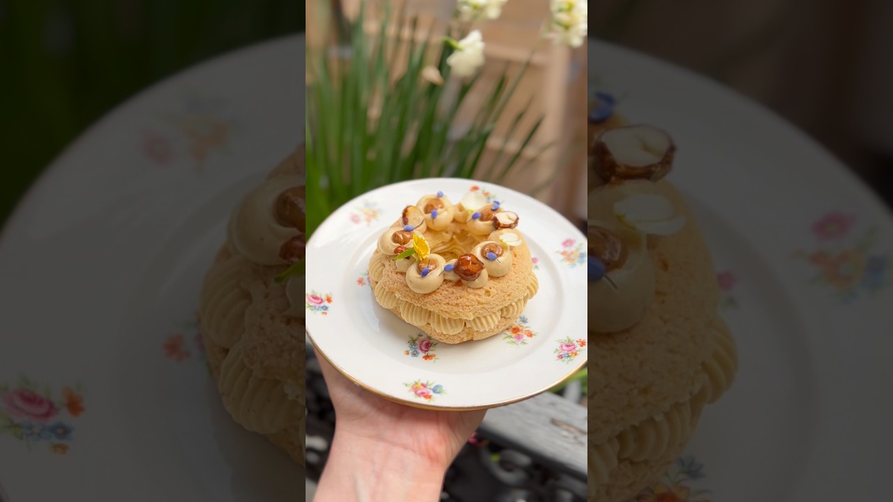 Paris Brest is a dessert made of praline cream and choux pastry in a wheel shape to celebrate the bike race from Paris to Brest and back to Paris which is about 1,200km/750 miles!