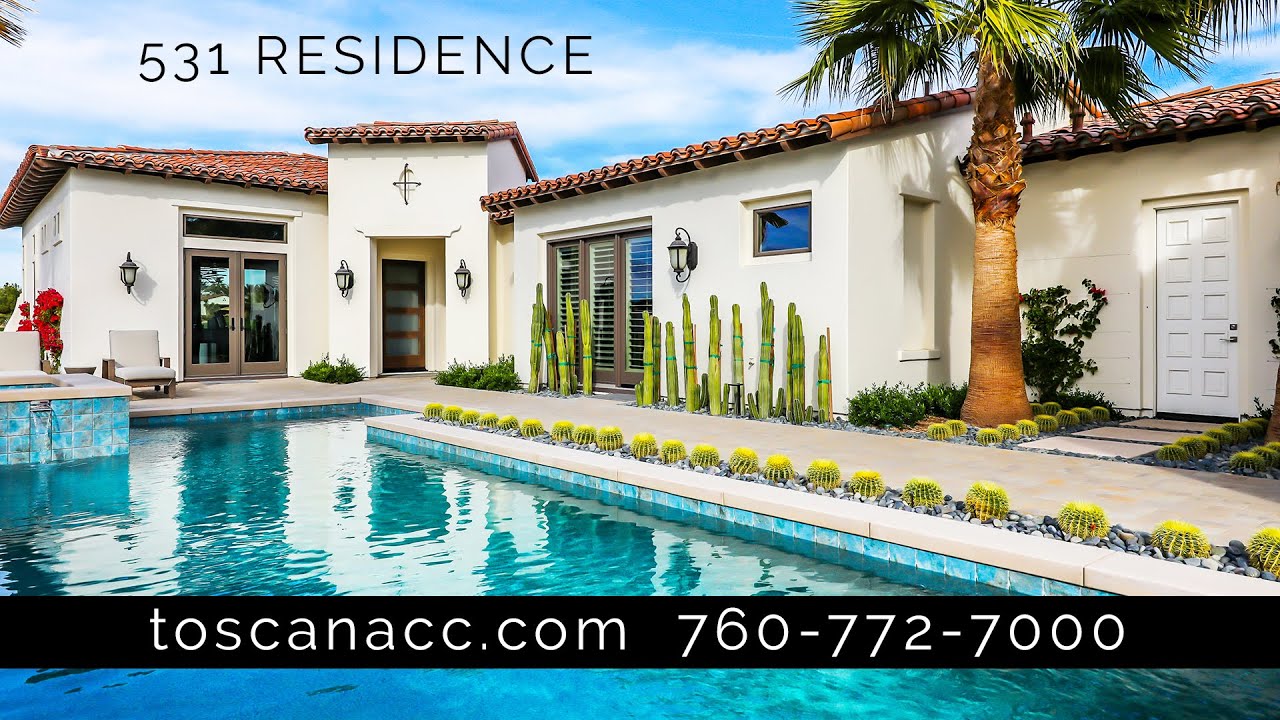 The Milano 531 Plan at Toscana Country Cub in Indian Wells, California is designed to be built on an large homesite allowing for a courtyard pool. The 3,018 square foot plan offers an open and spacious great room ideal for entertaining with dramatic 10′ disappearing pocket doors showcasing the golf course views. The gourmet kitchen features Wolf and Sub-Zero appliances including a 36″ cooktop and hood, built-in refrigerator, undercounter wine refrigerator and built-in microwave. French doors lead out from the kitchen to the courtyard entertaining pavilion that can feature a pool, spa and built-in barbeque. The master bedroom has a luxurious spa bathroom and an outdoor patio. Guests will enjoy three guest rooms all with en-suite bathrooms including one bedroom with private access off the courtyard. The Club at Toscana offers golf, dining, fitness, tennis, pickleball, bocce a spa along with full calendar of fun social and recreational events. Close to the BNP Paribas Open, Indian Wells Tennis Gardens, El Paseo Shopping, McCallum Theater and Eisenhower Medical Center.