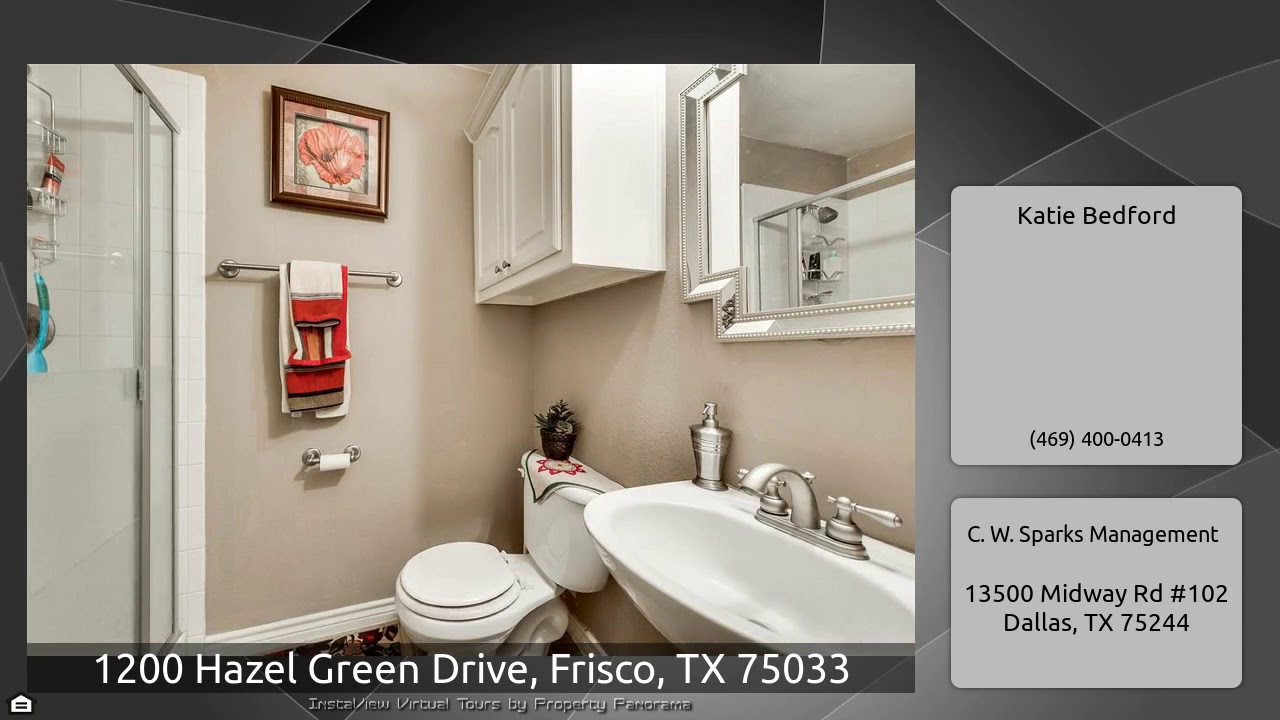 The Virtual Tour for the property at 1200 Hazel Green Drive, Frisco, TX 75033 listed for $2,300: Other homes for sale by Katie Bedford of C. W. Sparks Management: Stunning 5 bedroom property in Gray Hawk. Inviting entry opens to gorgeous formal dining and living space and study with french doors. Huge kitchen with butlers pantry, granite counter tops, stainless steel appliances and island opens to large living area with floor to ceiling stone fireplace. Beautiful dark wood floors, tile and bright neutral paint tones throughout main living areas. Tray ceiling detail featured in the master, …
