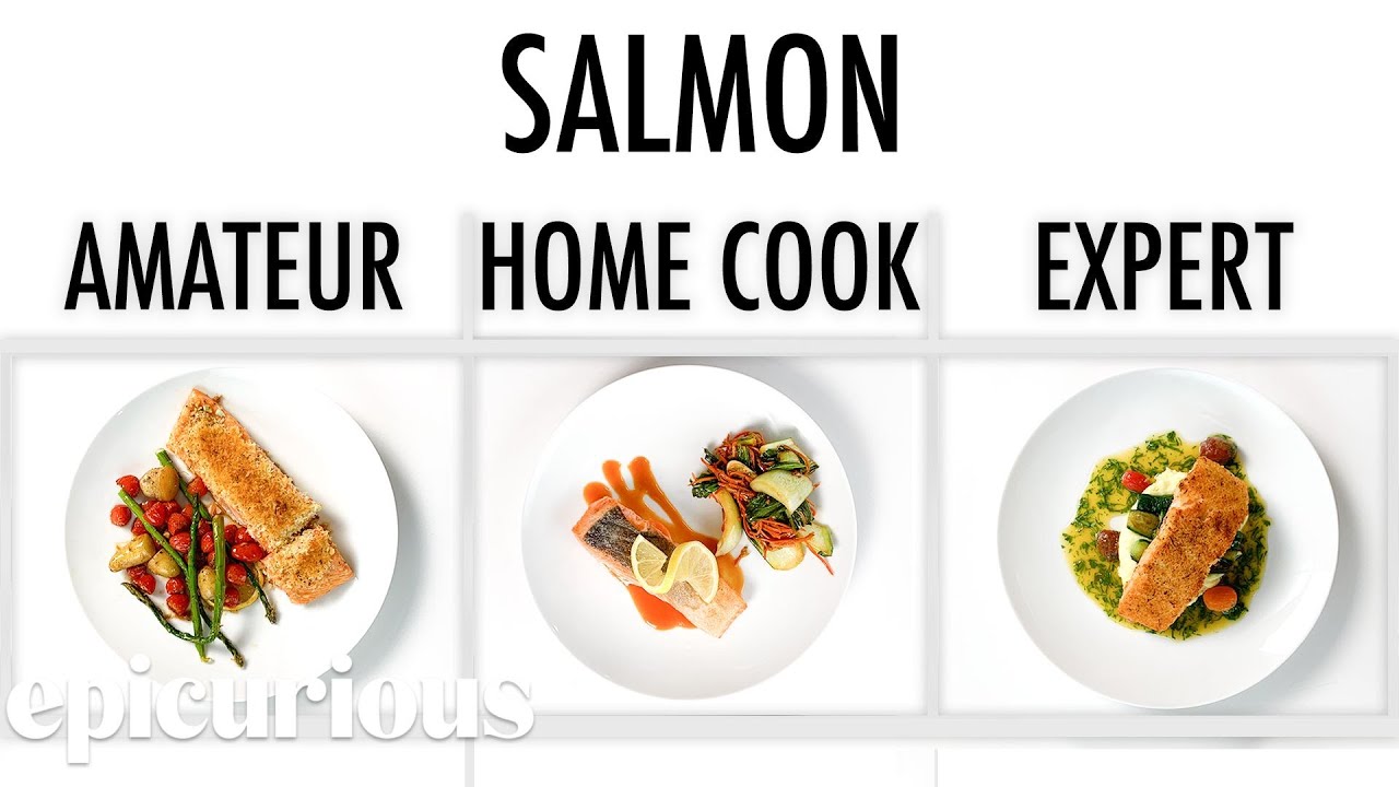 We challenged chefs of three different skill levels – an amateur, a home cook, and a professional – to prepare a salmon dish of their choice. After each of them had offered up their creation, we asked a food scientist to review their work. Which salmon looks the most slammin’?