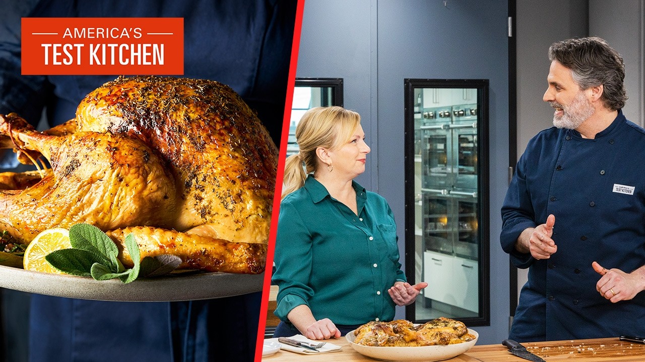 Elevate your holiday table with two new twists on Thanksgiving classics! Keith Dresser shows Bridget Lancaster his recipe for juicy roast turkey with herbes de provence and lemon, while Becky Hays shows Julia Collin Davison how to make a Thanksgiving stuffing that’s rustic but hearty. Plus, Lan Lam gives tips on how long you should properly cut meat: against the grain.