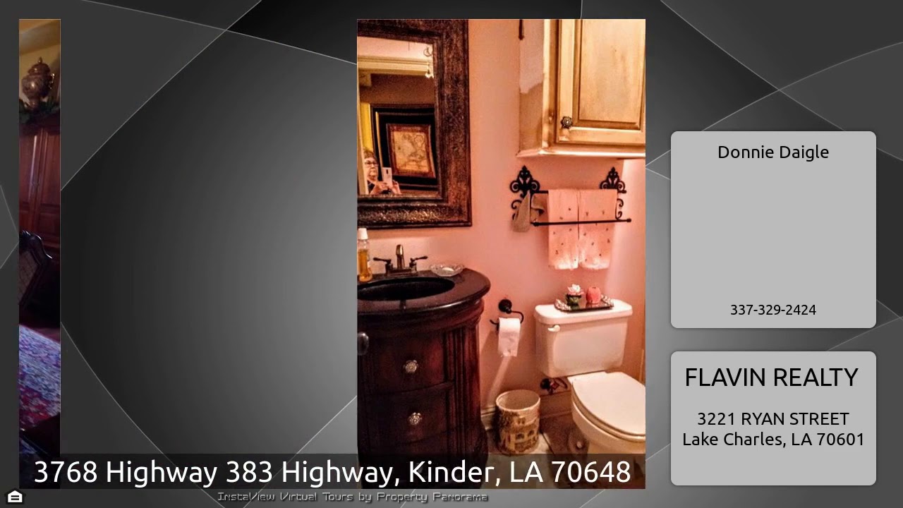 The Virtual Tour for the property at 3768 Highway 383 Highway, Kinder, LA 70648 listed for $285,000: Other homes for sale by Donnie Daigle of FLAVIN REALTY: Simply beautiful French Country home with 2160 sq ft of living area (give or take) and 640 sq ft of garage. Brick and stucco façade. Interior includes a beautiful kitchen with antiqued cabinetry, granite counter tops, pantry, double oven and range, refrigerator, dish washer with ceramic tile floors. Living and dining room open floor plan, den/parlor, foyer all with wood floors. French doors adorn the entry to the large and lush master …