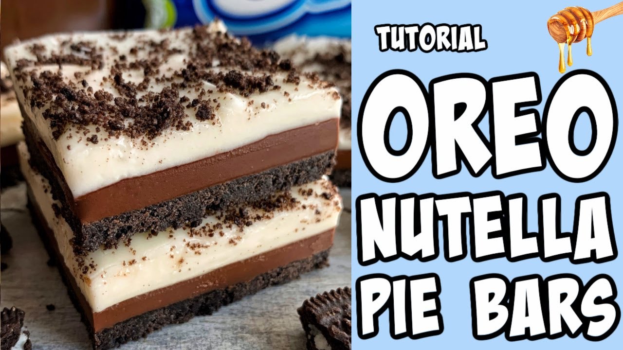 Check out this super simple how to make Oreo Nutella Pie Bars with switch sweet cream cheese topping.