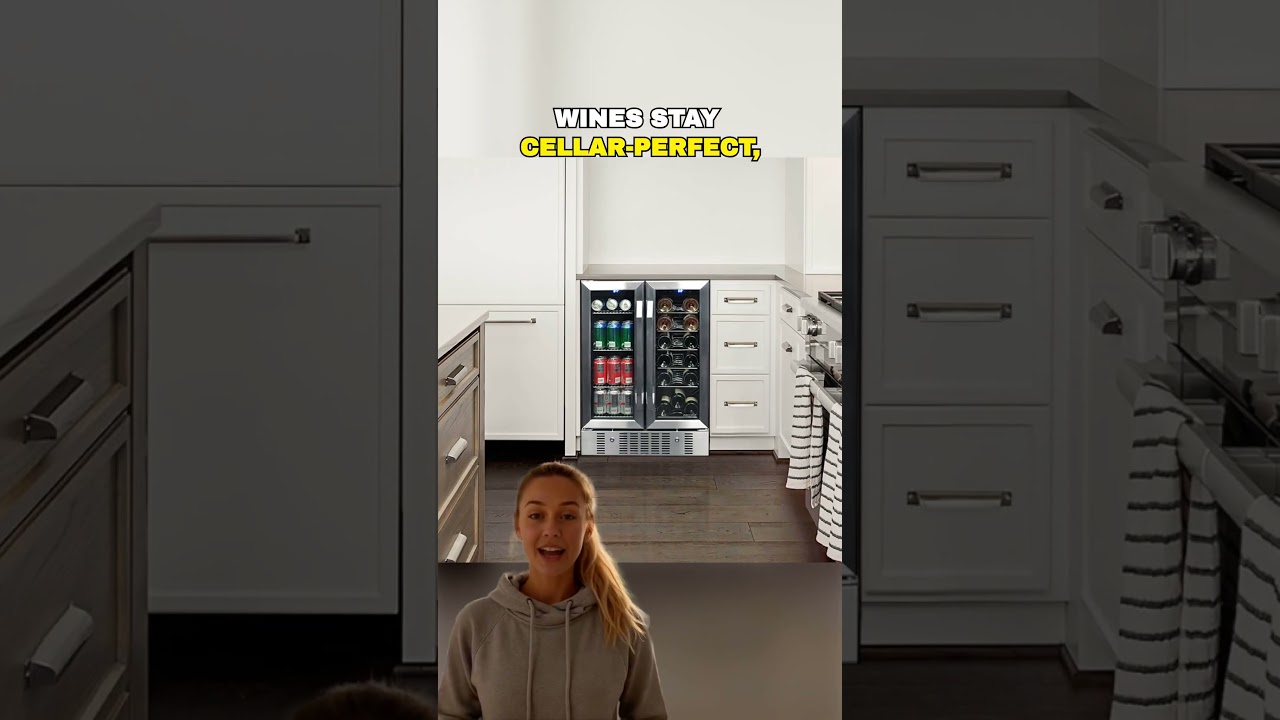 Perfect wine temps + ice-cold cans! The Newair French Door Wine & Beverage Cooler holds 21 bottles and 60 cans with separate zones.
