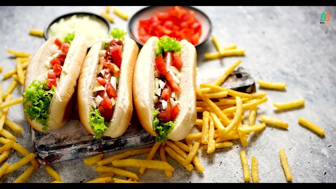 A mouthwatering spread of hot dogs smothered in ketchup and juicy burgers nestled in lettuce, accompanied by golden french fries, artfully arranged on a textured wooden surface. This visually appealing composition is ideal for food blogs, restaurant promotions, and advertising campaigns showcasing classic comfort food.