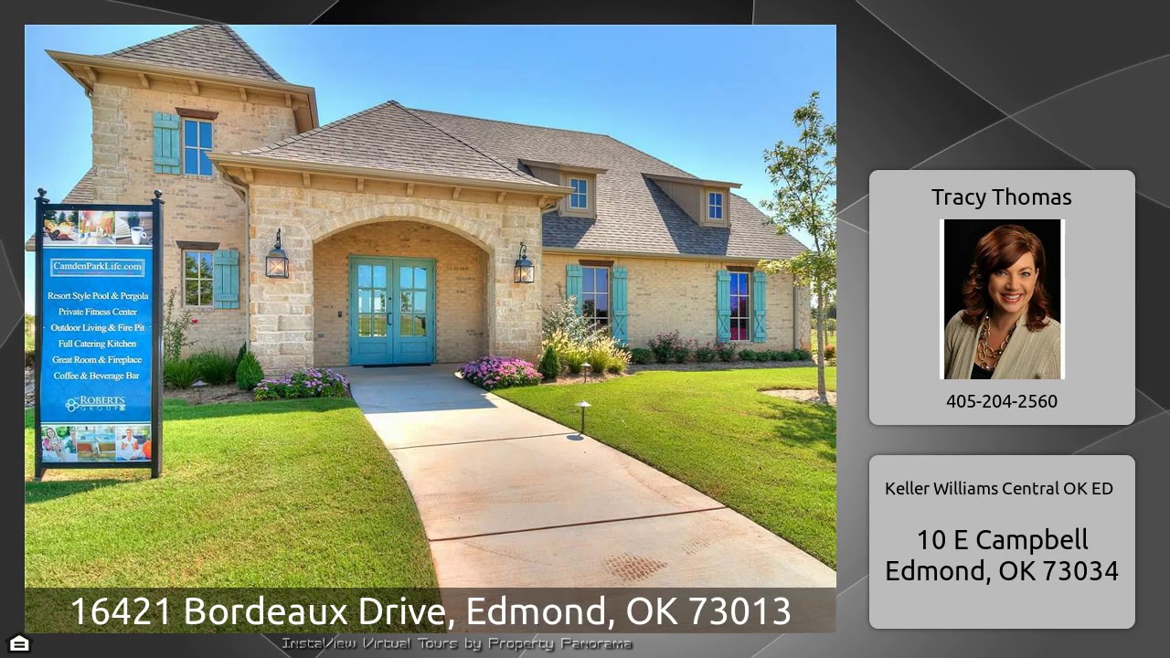 The Virtual Tour for the property at 16421 Bordeaux Drive, Edmond, OK 73013 listed for $507,000: Other homes for sale by Tracy Thomas of Keller Williams Central OK ED: New Home- Ready Spring 2020! A French Modern Style with a welcoming front terrace. Charming Camden Park offers maintenance free lawns. The Dawson plan is very open & a dream for interior lovers & entertainers alike, offering versatility in the layout with very spacious rooms for your lifestyle. 3rd bedroom/Study option + Study/Formal Dining. Kitchen features KitchenAid appliances, butler's & walk-in pantry, fabulous storage, …