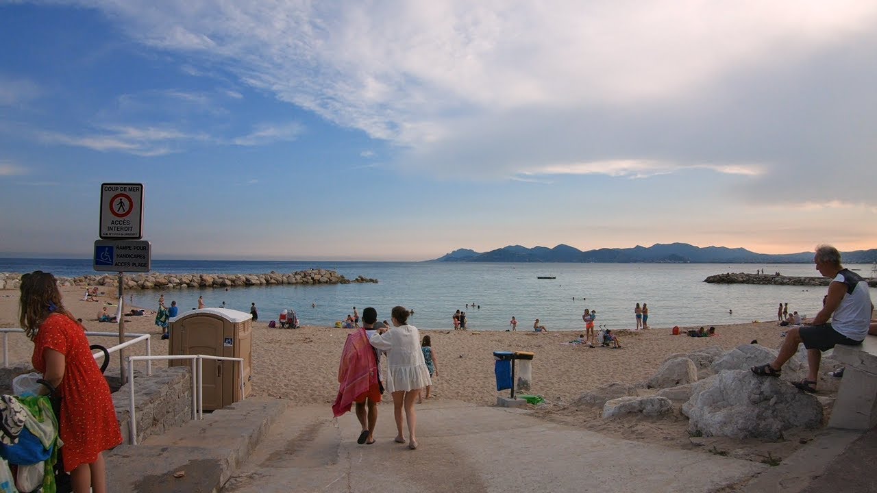 2.7K 60FPS first-person perspective Cannes, France walk tour in the early evening, taking in Cannes’ prestigious shopping street Rue d’Antibes, restaurant-lined streets leading to the Old Port with its night market, and ending on Promenade Jean Hibert’s beach pier.