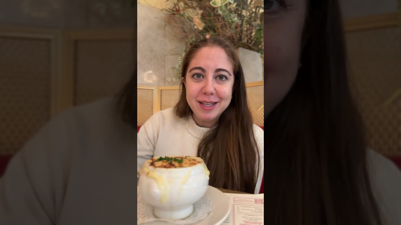 Cheese pull perfection! That French onion soup looks delicious! 😃💜🧅🧅🧅🍲