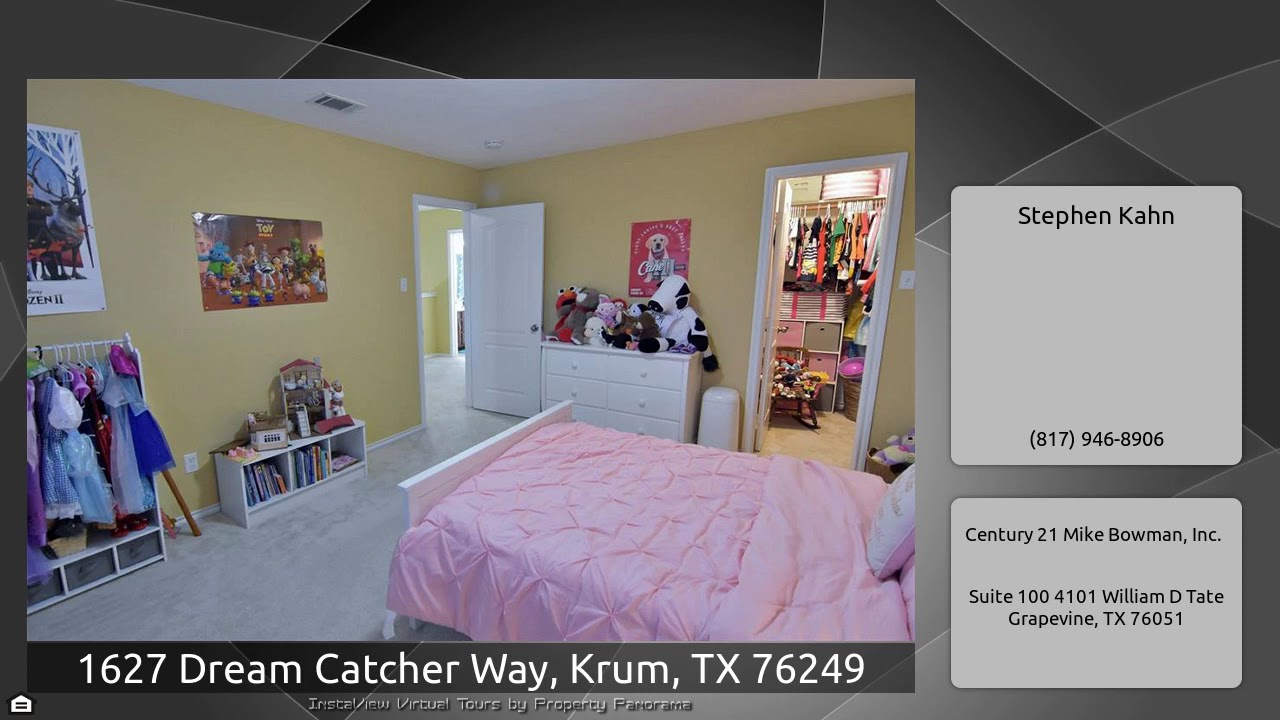 The Virtual Tour for the property at 1627 Dream Catcher Way, Krum, TX 76249 listed for $218,750: Other homes for sale by Stephen Kahn of Century 21 Mike Bowman, Inc.: FABULOUS 2 STORY 3-2.5-2 WITH UPSTAIRS LOFT-GAME AREA, FRONT STUDY OPTIONAL 2ND DINING & HUGE POOL SIZED BACKYARD IN KRUM!*Great open Floorplan with Lrg Chef's Eat-in Kitchen complete with Granite Countertops,loads of counter space,Cabinets with handles & knobs & HUGE walk-in Pantry-Laundry combination*Spacious Living with Hardwood floors & corner W-B Brick Fireplace opens to private Study with French Doors,optional 2nd Dining …