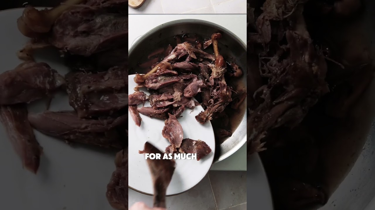 2 confited duck legs, meat separated from skin and bones