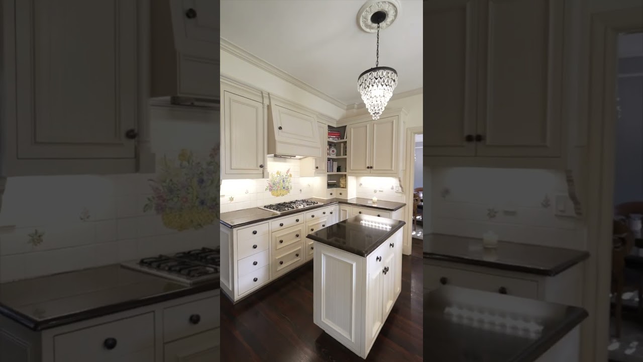 Upstairs, you’ll find four bedrooms plus a sunroom perfect for relaxation or creative space. Situated on an impressive 80×243 lot, the property features an English-inspired perennial garden, covered patio for al fresco dining, and mature trees throughout. A four-car garage with alley and street access, electric gates, and space for a future pool add exceptional versatility.