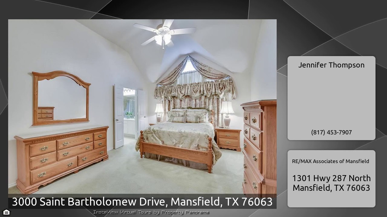 The Virtual Tour for the property at 3000 Saint Bartholomew Drive, Mansfield, TX 76063 listed for $294900: … 300076063BartholomewCuisineDiningDriveFranceFrenchfrench cuisineFrench diningMansfieldSaintVideoVlogYouTube