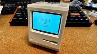 This is not a vintage clock, it is a newer clock made to look like a computer from the 80s. Your room is already having an interesting design conversation between the wallpaper and the chandelier. So adding in one more quirky element—why not?