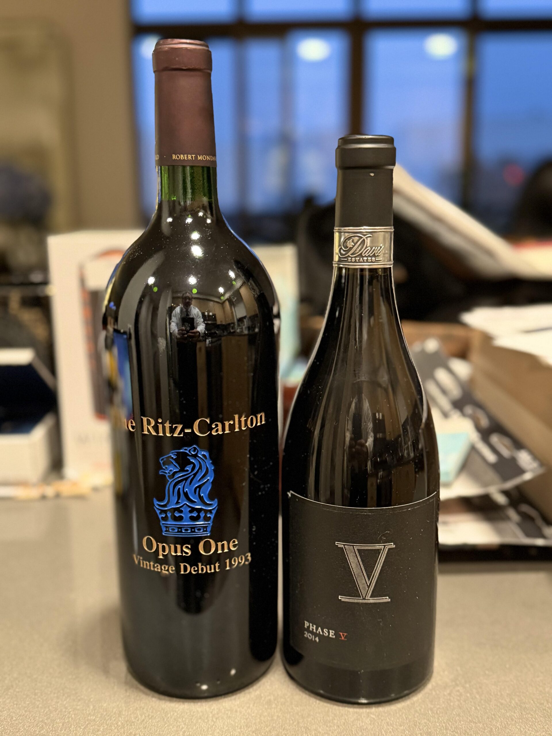 Christmas Party Wine I brought last night. That limited edition bottle of Opus One 1993 was spectacular. Davis Estate Phase V 2014 was really good too. Philippe Melaka is a great wine maker.