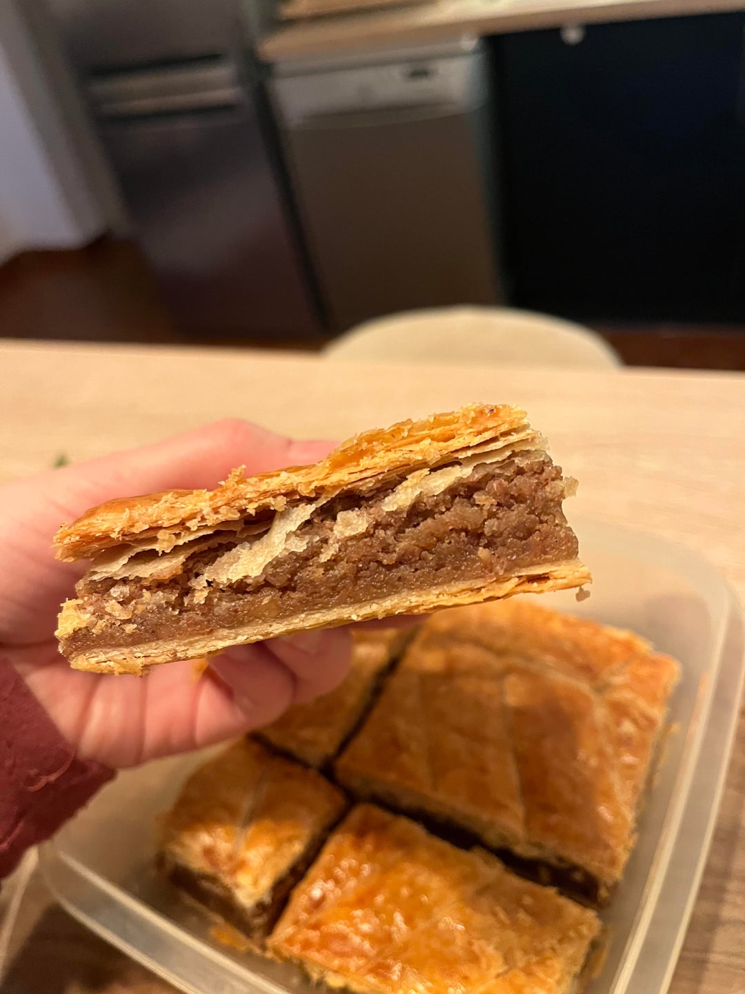 Incroyable la pâte feuilletée pour une première. Ça doit être un régal avec les noix, j’ai jamais testé.