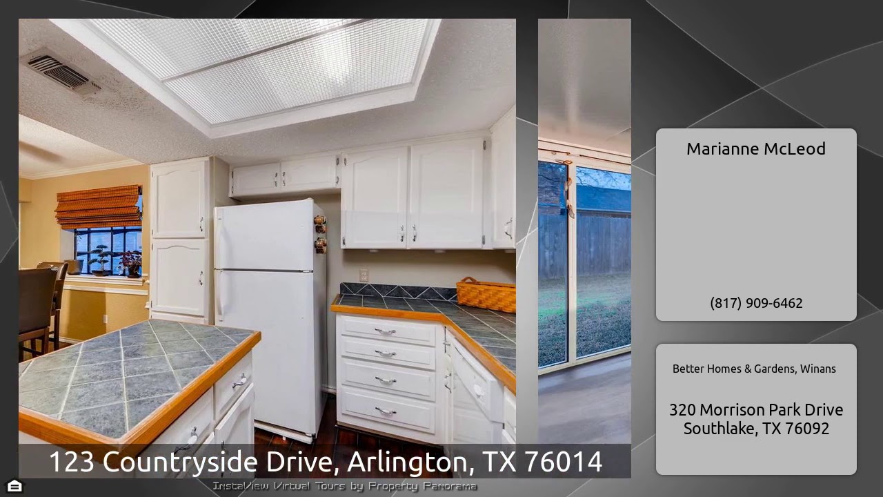 The Virtual Tour for the property at 123 Countryside Drive, Arlington, TX 76014 listed for $234,000: Other homes for sale by Marianne McLeod of Better Homes & Gardens, Winans: BEAUTIFUL, UPDATED, WELL MAINTAINED HOME, WALKING DISTANCE TO ELEMENTARY AND JR HIGH SCHOOL, ARLINGTON HIGHLAND AREA. Quiet, Established Neighborhood with many trees and sidewalks. Close to Park. Upgraded Floors in Living Room with gorgeous floor to ceiling stone fireplace. Sunny Kitchen with center island and built in hutch in dining area. French doors lead to screened in Patio and lovely backyard. There is a free …