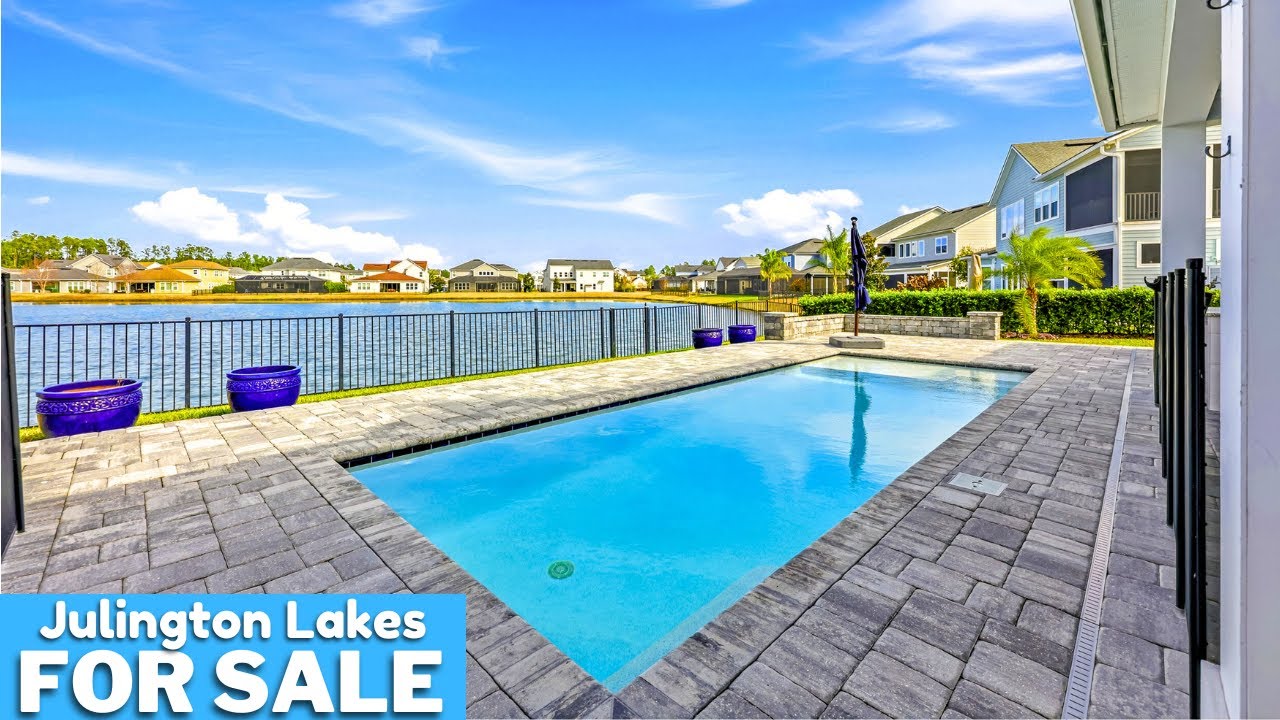Take a tour of this stunning executive pool home! Live the Florida dream on a premium 0.36-acre water-view lot in the gated community of Julington Lakes. This 4-bedroom, 4.5-bath home features a private office, loft, stately paver driveway, and a 4-car split garage with EV charger and epoxy floors. Step into your ultimate backyard oasis: oversized paver lanai, full summer kitchen, sparkling heated saltwater pool, and serene water views—perfect for entertaining or relaxing in style. Inside, the home shines with luxury vinyl plank floors, crown molding, custom trim work, designer lighting, plantation shutters, and abundant natural light. The gourmet kitchen boasts an oversized quartz island, two-toned double-stacked cabinetry with crown molding, tile backsplash, walk-in pantry, and high-end appliances. The living room impresses with a soaring two-story tray ceiling, gas fireplace, and tranquil backyard views. The owner’s suite features a tray ceiling with exposed wood beams, French doors to the backyard, large walk-in closet with built-ins, and a spa-like en suite with dual-sink vanity, custom walk-in shower, and garden tub. Additional highlights include a first-floor guest suite, private office, elegant dining area, upstairs loft/family room, and spacious secondary bedrooms. Extra features: Starlink-ready wiring, security system, outdoor Bluetooth sound, SMART light switches and outlets, and a laundry room with sink, cabinetry, and folding counter. Residents enjoy Julington Lakes’ resort-style amenities: pools, sports courts, kayak dock, fitness center, parks, and more—all while being zoned for top-rated St. Johns County schools. Just minutes from shopping, dining, and entertainment!