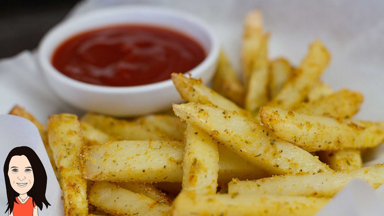 These crispy seasoned homemade oven fries are made without oil!