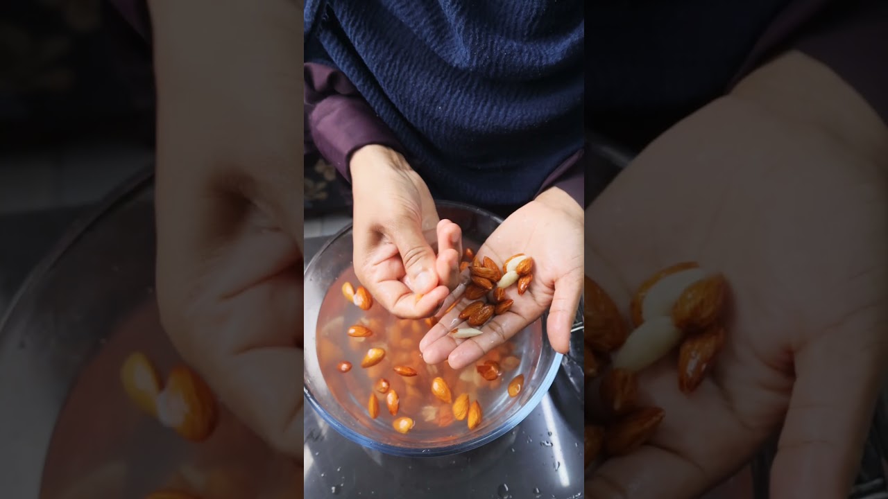 بادام کو گرم پانی میں 10 منٹ بھگو کر چھیل لیں