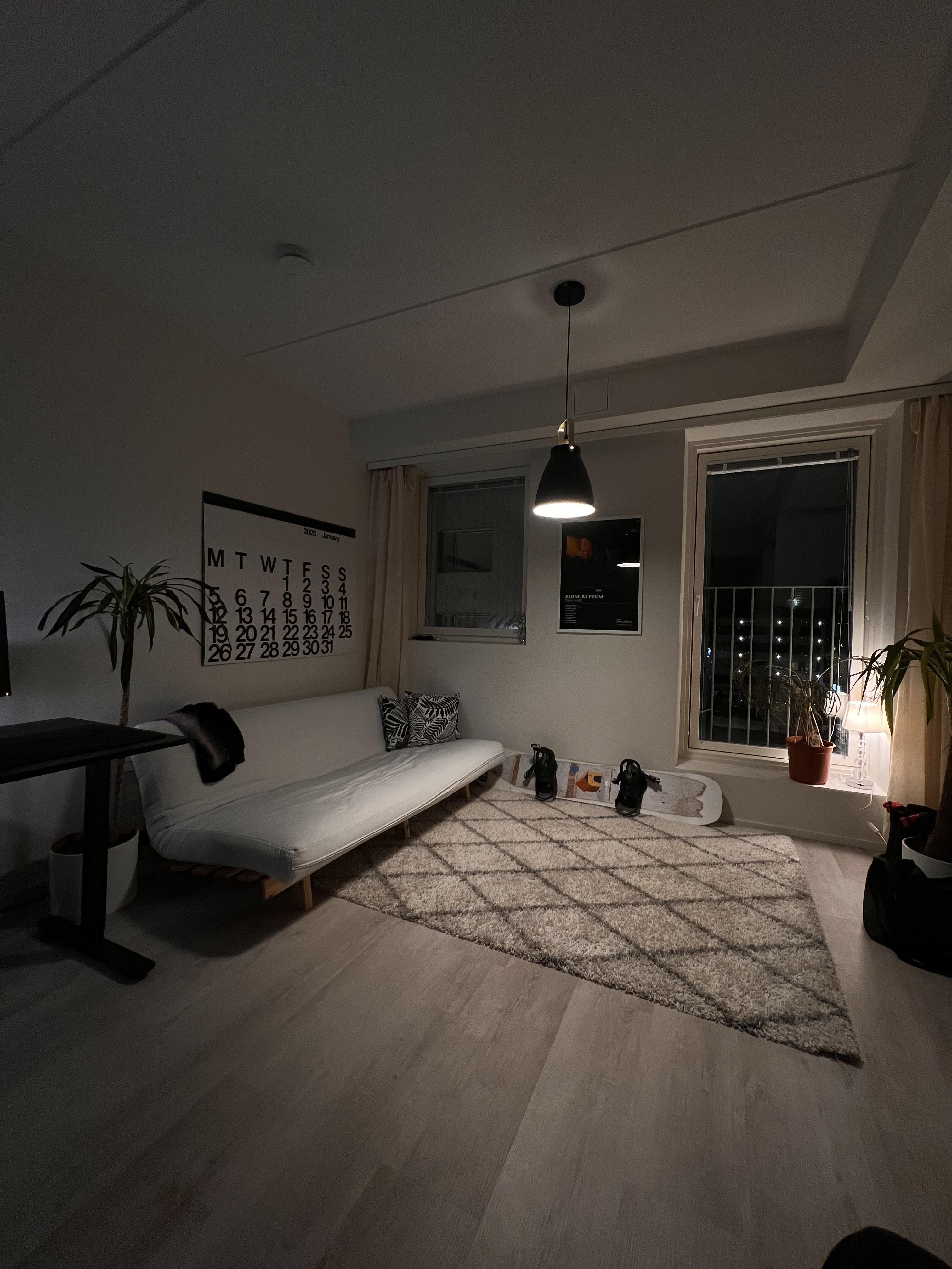 Hi! Im looking for suggestions for coffee tables and other decor for my 25m2 studio apartment. The sofa is very low and the seating is around 30-35 cm above the floor. Any ideas on how to decorate the walls especially where the snowboard is would be appreciated.