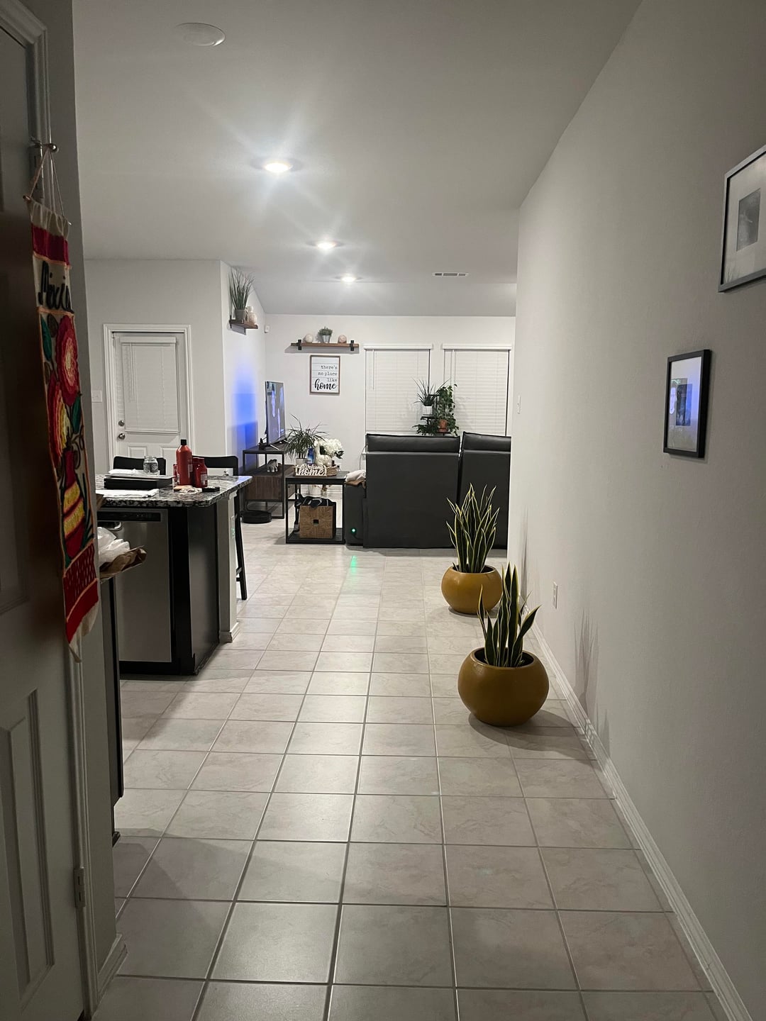 I’d just avoid anything that sticks out from the wall too much since it looks like that area is a heavy traffic spot.