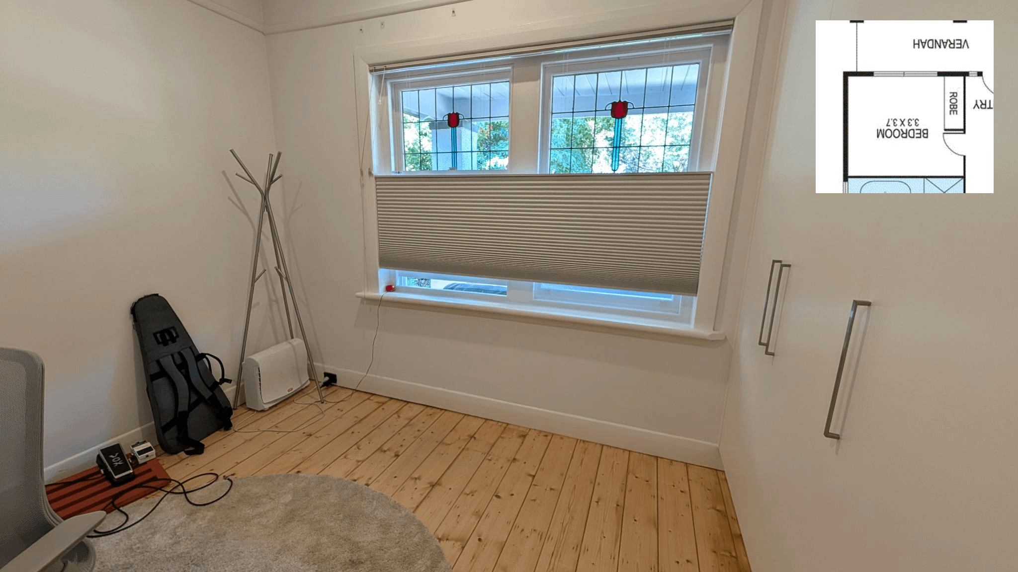 The room is used as an office, the opposing wall is where my desk is, the left corner I imagine putting in corner shelves for some plants and books and things, but I can't do anything with the right hand corner because it would block the cupboard, and under the windows is this awkwardly short space. I'm trying to avoid putting my desk on that side because it feels weird having my back to the door.