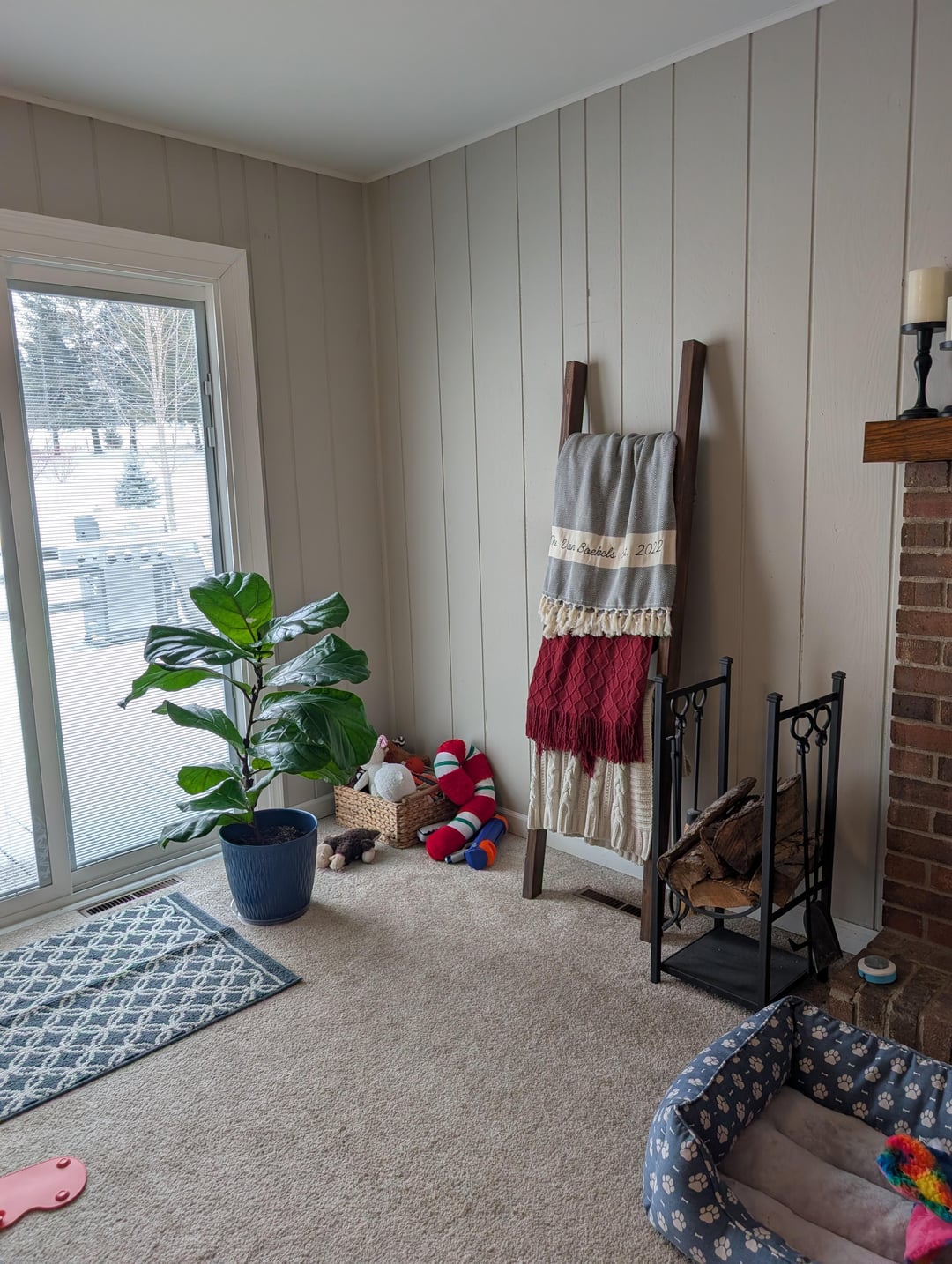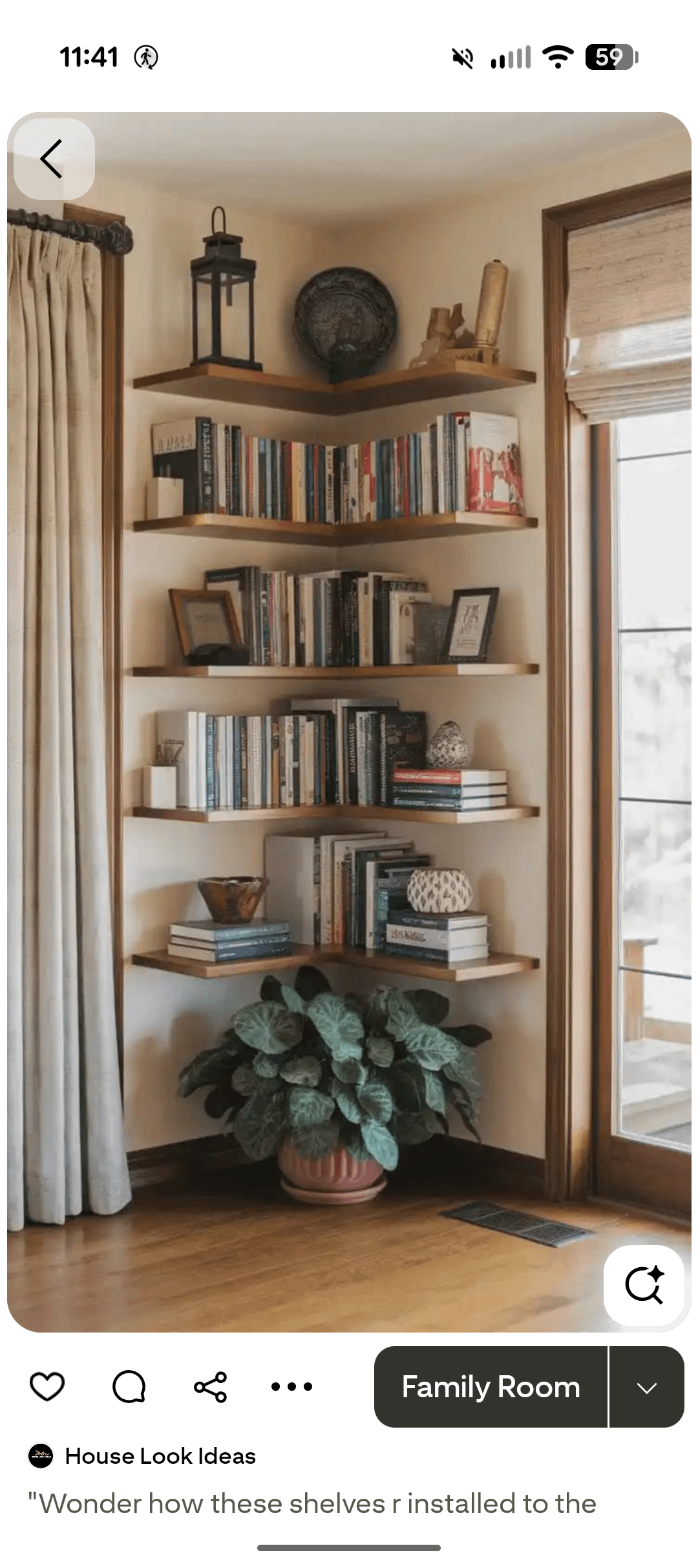 I want to add a bookshelf to this corner. The fiddle leaf fig has to stay in front of the sliding glass door but everything else can be moved elsewhere. I would like the blanket ladder to stay in this area but it's okay if it doesn't. I added two pictures for what I was thinking but I'm open to other options!