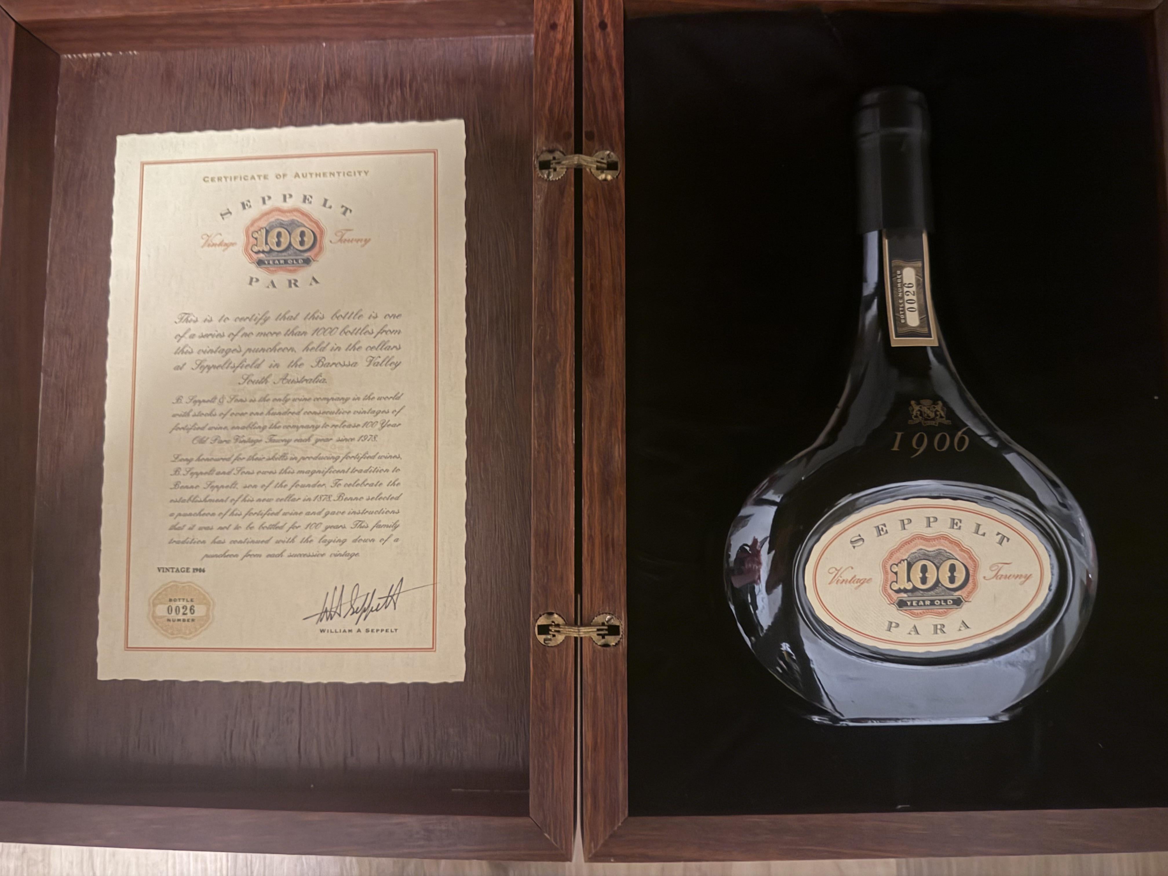 A while back I was gifted a bottle of vintage Seppelt Para Vintage 1906 100 Year Tawny (according to ChatGPT).