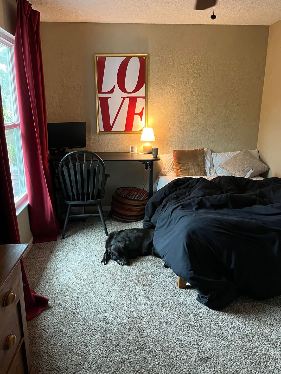 i just dont love it. Feels boring and not well designed. I want a rug but ifk how id place it with this layout. I need a comfy office chair too. Idk km opening to just starting over too but curious what youd suggest.
