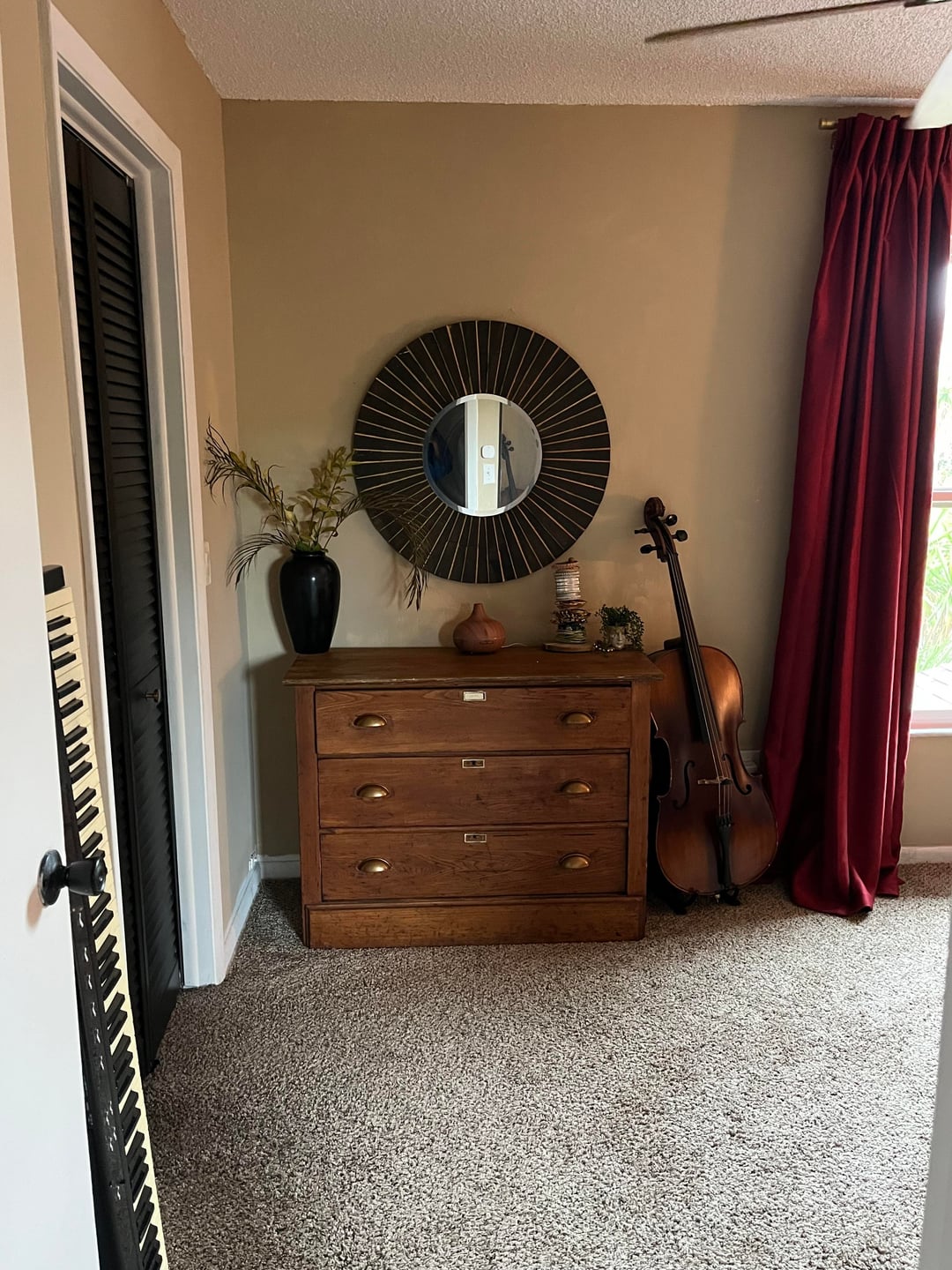 I would center the bed and add two nightstands/chest of drawers with ample storage. Then put an area rug in that zone under the bed. You might be able to add a bench or some smaller accent chairs at the foot of the bed. I’d look into getting some good quality bedding as well to elevate the space even more. Put the desk over where the small dresser is. The dresser is really pretty. I’m not sure if there’s another spot in your home for it, but it could look nice in an entry way.