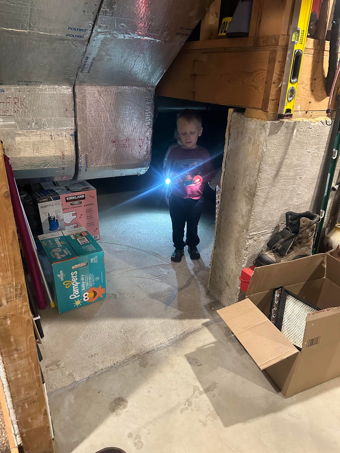 Hi! I need some design ideas for our crawl space. We live in a sort of split level? I never know what to call it- my parents built it (my husband and I bought it) so it’s not traditional, but anyway…. We have a large crawl space in our basement. It’s about 3.5Ft tall. My brothers and I used to play in there when we were kids because we didn’t have air conditioning and it was cool. 😂 it’s sort of divided into two sections— the pictures I have show the spot I would like to “re-do” with all of our storage stuff now. We would move all of our storage to the back section and create a kid space. A tiny world, if you will. I’ve asked ChatGPT for help and, of course, the ideas are spectacular- but out of my scope of creativity. It would look like a Pinterest fail. SO- Reddit family: please help me with simple, do it yourself for the average not super creative mom ideas for a cool play area!