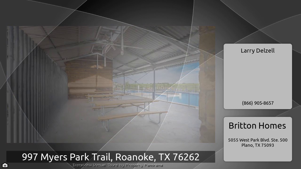 The Virtual Tour for the property at 997 Myers Park Trail, Roanoke, TX 76262 listed for $649,900: Other homes for sale by Larry Delzell of Britton Homes: PERRY HOMES NEW CONSTRUCTION READY FOR MOVE-IN! Mahogany front door. Two-story entry with a circular staircase. Library with French doors. Formal dining room with ceramic tile floor. Two-story open family room with ceramic tile floor and a wall of windows. Kitchen and morning area open to family room. Master bedroom with 12-foot ceiling. Master bath with dual vanities, garden tub, a separate enclosed glass shower and a walk-in closet. …