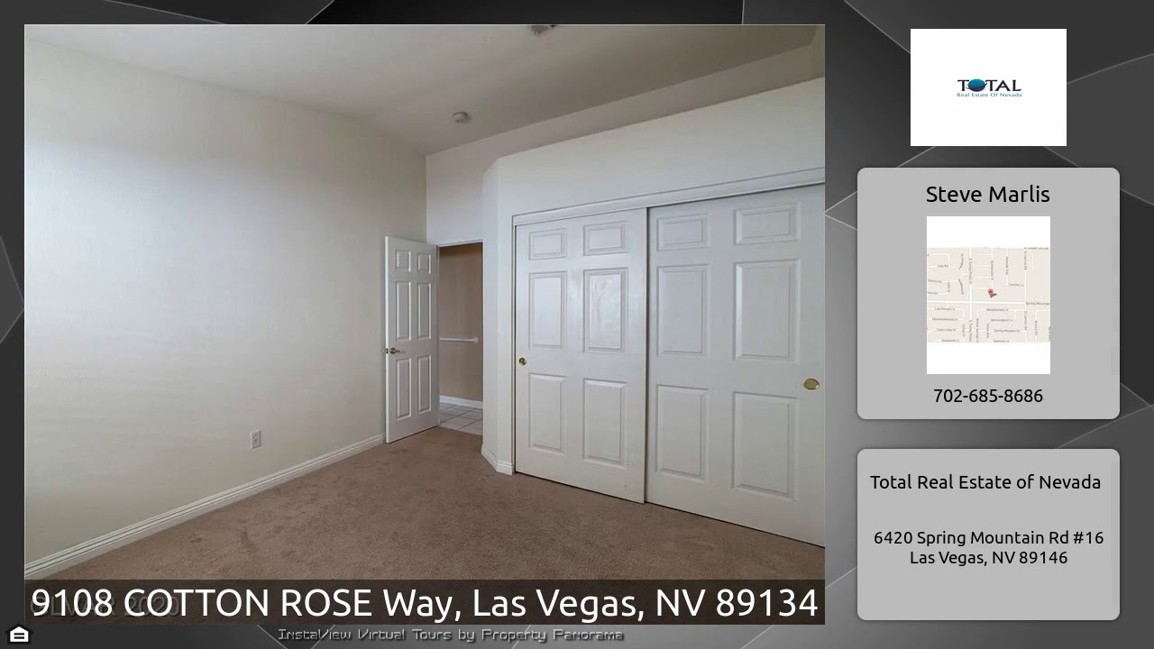 The Virtual Tour for the property at 9108 COTTON ROSE Way, Las Vegas, NV 89134 listed for $1,950: Other homes for sale by Steve Marlis of Total Real Estate of Nevada: *BEAUTIFUL*Single story 3 bed/2 bath home nestled in Summerlin Hills. Handicap and wheelchair accessible, roll in shower & under sinks (doors on order for kitchen), Featuring kitchen island, recycled glass counters. Formal living/dining combo. Family room w/ fireplace. French doors from family room & master to backyard covered patio. Community parks.