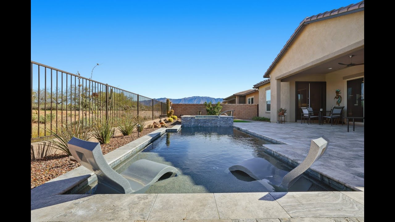 Set on a quiet street in a private gated community of only 39 Luxury-Level homes, all recently built, this handsome contemporary property includes over $280,000 in upgrades from the original model. A backyard oasis encompasses a gorgeous pool and spa with travertine decking that opens to the Vistoso Trails Nature Preserve, with miles of paths and views of the Catalina Mountains. In the pool, enjoy a “beach” landing for your lounge chairs and a self-cleaning system while taking in the tranquil mountain views. Handsome travertine pavers connect the well-sized covered patio and the pool area. The perfect spot to enjoy the sophisticated yet relaxed Oro Valley lifestyle! With a firepit nearby, it’s an ideal setting for a delightful evening. Inside, the home radiates warmth with many upgraded features…custom barn doors, granite counters, French doors, soft close doors on cabinets…and plenty of space for relaxed living. The kitchen offers ample storage in cabinets and a large walk-in pantry, along with a generous island and breakfast bar with attractive pendant lighting. An adjacent butler’s pantry provides additional storage, counter space, and a GE Monogram wine cooler, adding to the home’s ease of entertaining loved ones. The great room opens to the bountiful outdoor area and affords a cozy indoor spot to view the neighborhood wildlife of rabbits, deer, and bobcats that live nearby. A dining area provides vistas of the desert in the Preserve, and French doors to the outdoors. A separate dining room is utilized as a den, and could be an elegant setting for formal dinners with the addition of a fabulous chandelier. Four bedrooms and three full baths ensure that there is space for everyone, whether family or visitors. The primary bedroom overlooks the pool and encompasses a bath with granite counters and double vanities and a fabulous walk-in shower accompanied by a versatile walk-in closet.