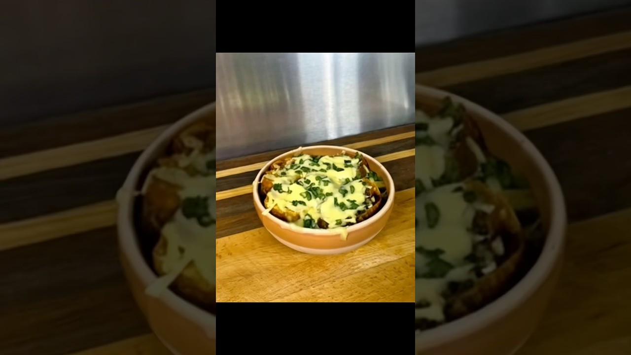 • place the toast with cheddar on the top of the bowl and put it in the oven until the cheese is melted and then top it with chives and serve.