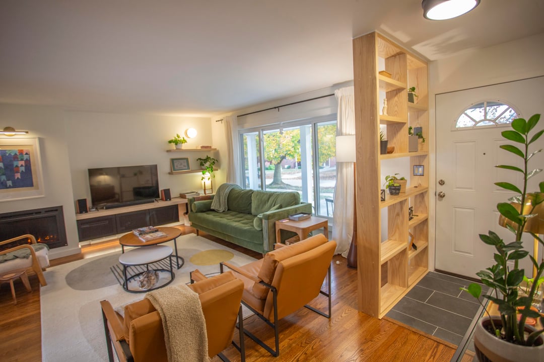 bimbels 16 hours ago Very cute! My only suggestion would be to pull the 2 chairs closer to the coffee table. Seating should be 18” from the coffee table to make the table actually useful. I also think the cute entry would benefit from a little space there.