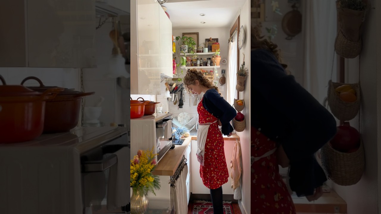 How lovely her kitchen is i love english frensh littel colourful kitchen how warm their kitchen are so classic style❤