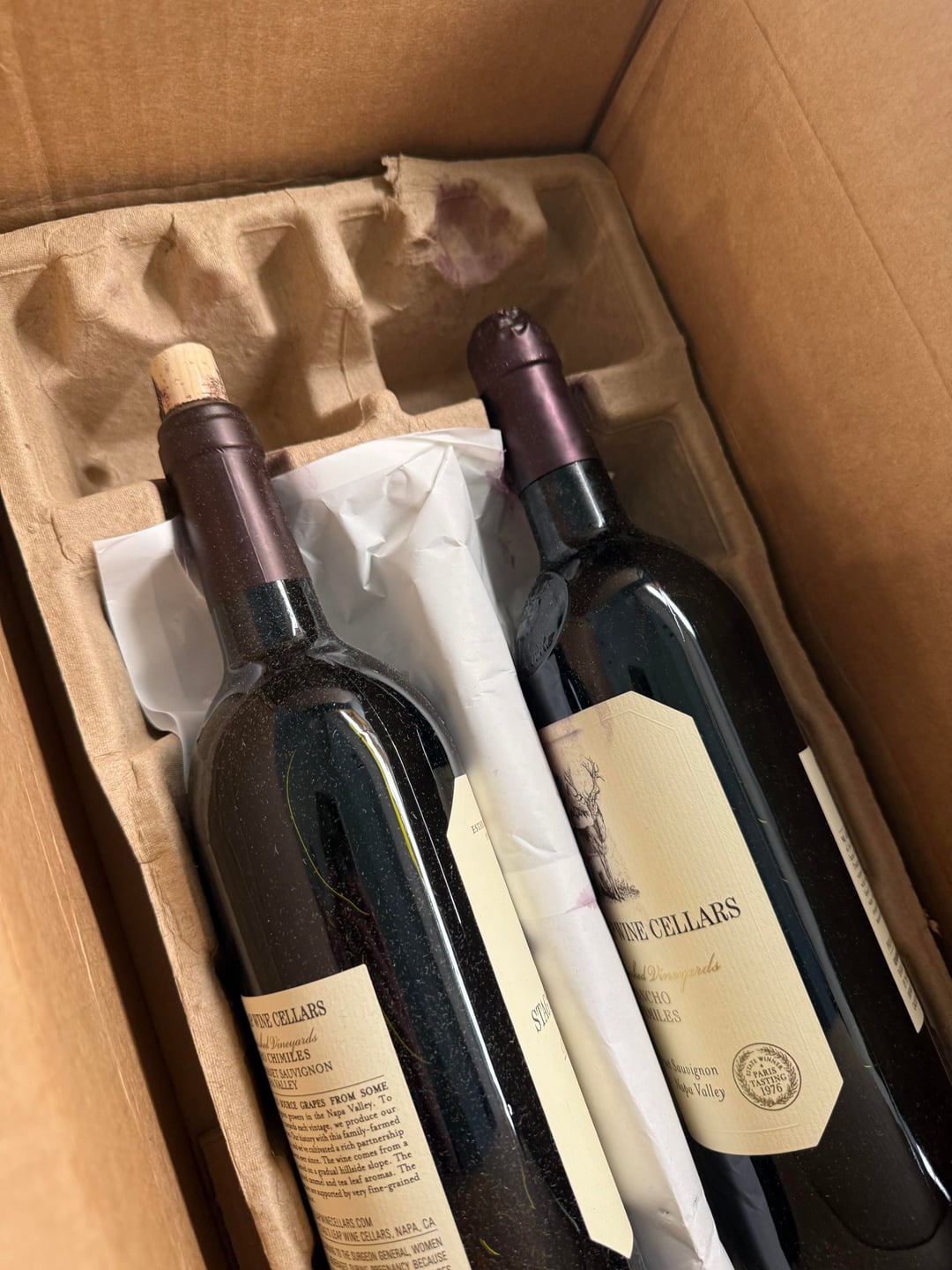 Ordered some Stag's Leap Wine Cellars Battuello Vineyard Cabernet Sauvignon St Helena Napa Valley 2013 via WTSO. Shipment was delivered yesterday and one cork was 1/2 way out and the other was penetrating the foil and leaked all over. WTSO offered to make it right less than an hour after I emailed. They’ve always had quick and efficient service and that’s much appreciated in today’s age.