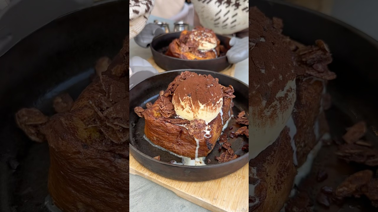 ふわふわで飲めるほど卵液が染み込んだフレンチトーストに、チョコチップやフレークの食感がアクセントになっていて、更にチョコソースを加えたチョコ尽くしで最高🍫