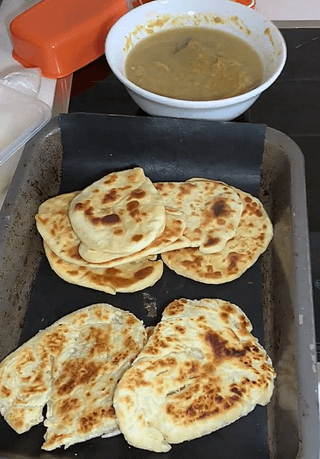 10-minute Roti Canai test, result is better than Frozen Stuffs. ~85% as good as Malaysian experience; but abroad. Much better/cheaper/easier than the frozen Roti Paratha stuff you can buy.