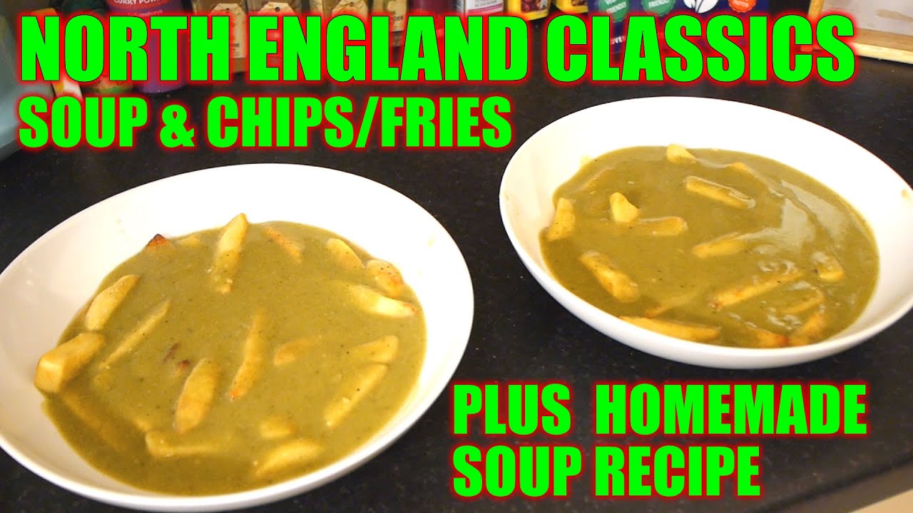 A quick daft one to share a great soup recipe and start a discussion about regional foods and meals. ‘Ere up north, north England that is, we love soup & chips. Homemade soup poured over a bowl of chips/fries. Ever had it?