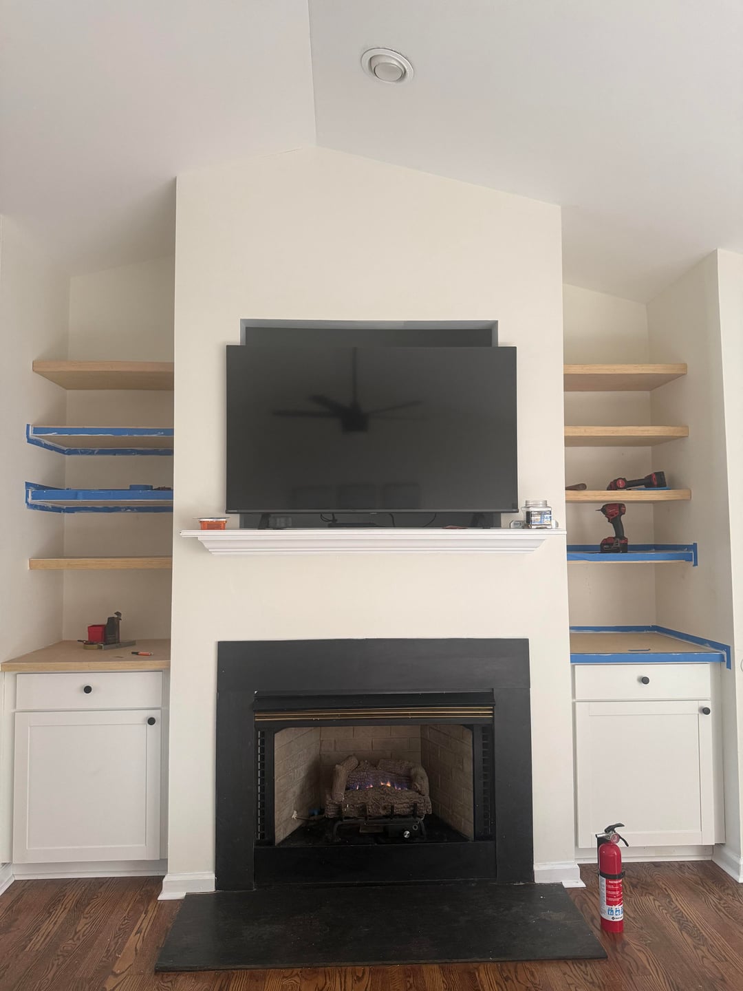 On the agenda right now are these bookshelves my husband is in the process of building, removing the mantle, and filling in the TV hole (I HATE that thing).