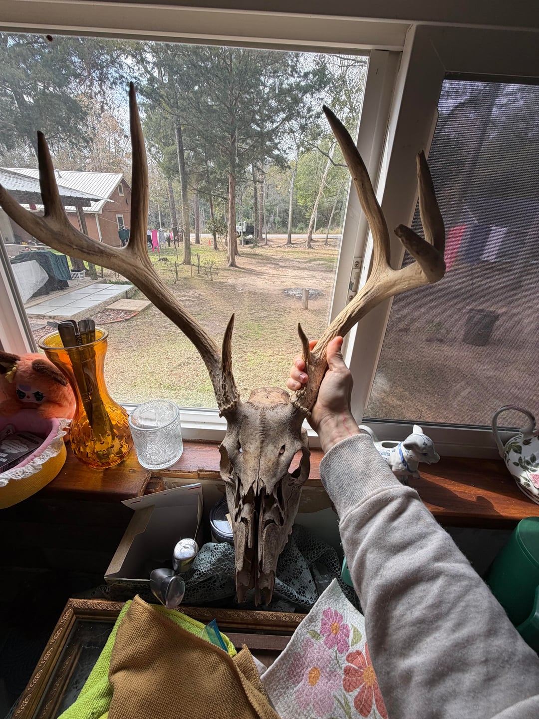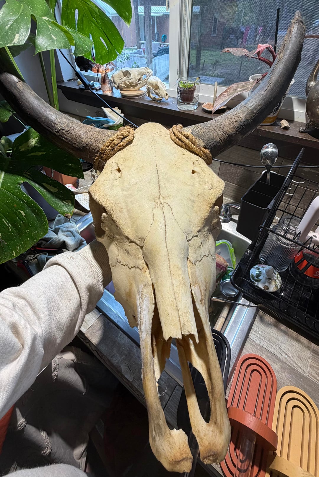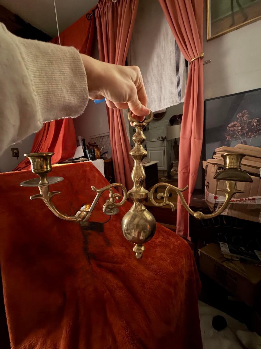 Hello, I just moved into my own studio apartment and I am in the process of redecorating. I have a little bit of a weird layout, but it’s just me and my two dogs so it’s perfectly fine. The kitchen and the living room room share a space, and my couch is 93 inches long and it’s from Joy bird.(Chelsea) and it is in the color terra-cotta rose I believe. I’m having a hard time figuring out if I should get a large round rug for the living room, or if I should get a rectangle rug for the space. I do have some furniture to use to separate the spaces, but I do believe that using rugs in small areas also really make a huge difference. So any advice or input would be great, I’m unsure of the shape in the color that I should get that would complement my decorating. I will put some pictures of the color scheme I’m going with, but I do like a lot of natural wood, brass, I’m definitely one of those girls who likes antique things, I prefer real wood and real material over fake material any day, no hate for anybody who doesn’t feel that way, this is just my personal preference. I think houses look beautiful that aren’t decorated in my style 🖤. I have a lot of animal skulls, taxidermy, wood, brass, antique vases, hutches, repurposed 3 leaf wooden table, wrought iron and wood coffee table etc (I’m trying to paint an image lol) I pretty much am going for like a muted earth tone color throughout the entire studio. I do have a lot of art that I’m going to put on the walls, and most of the walls besides, a few are going to be painted Navajo white by Benjamin Moore, it’s like an off-white, but it’s not too warm and it doesn’t have gray undertones, it’s a nice neutral white without it being extremely bright so you feel like you’re in the dentist office lol (I highly recommended, especially if you have natural wood in your house that you’re trying to preserve, it goes great with natural wood, or stained wood, whatever) below I attached some photos of the couch, the color scheme I’m going with, and some of the art that I have to still put up along with table lamps, etc.