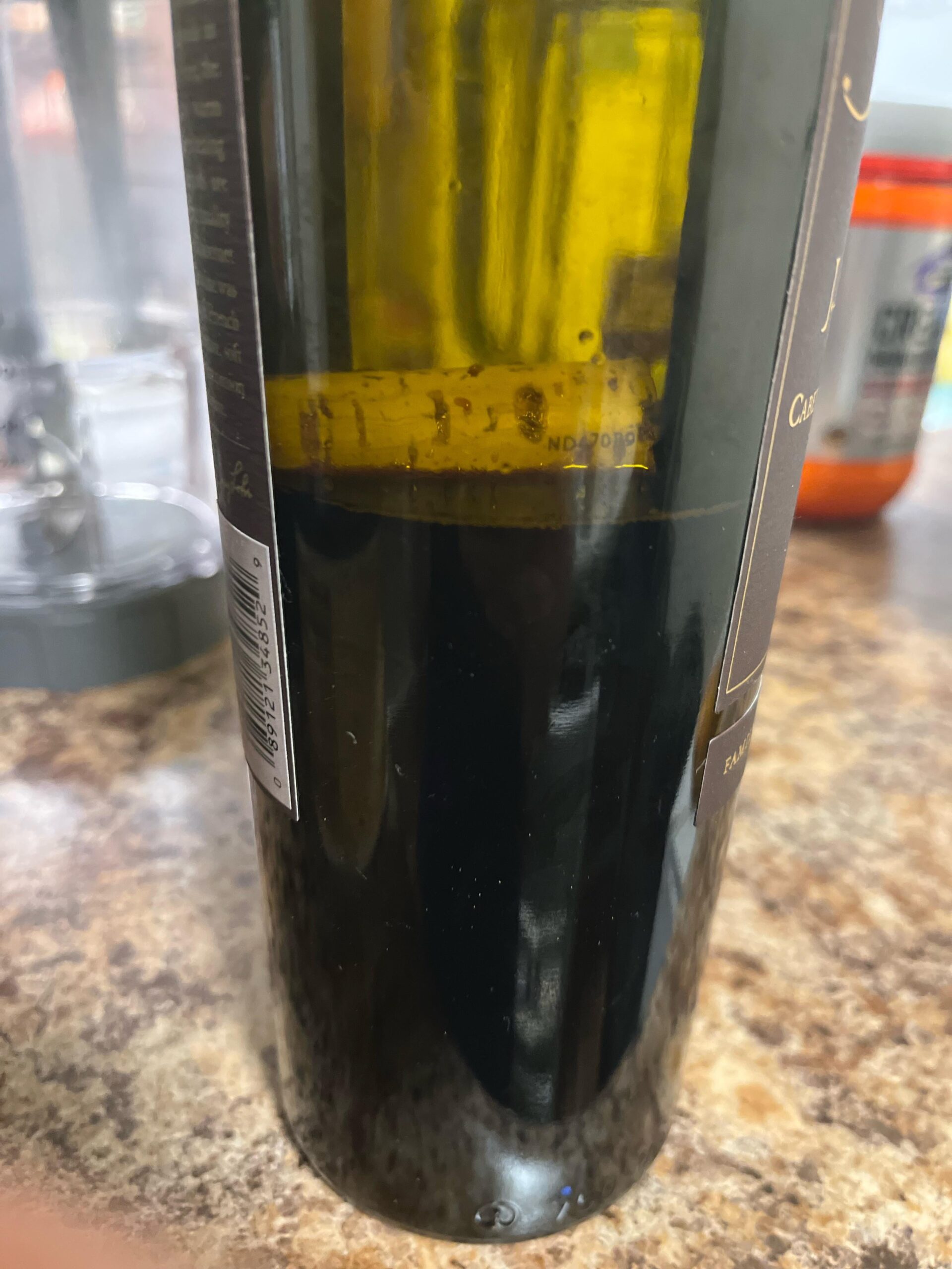 We call that cap a cork. There are two things you can do at this point. If you have one (and they’re inexpensive), a device called a cork fish will pull it out in seconds. Otherwise, if you have a chopstick or a skewer or something similar, you can stick it in the neck of the bottle so the cork doesn’t get stuck in the neck blocking the flow while you pour.